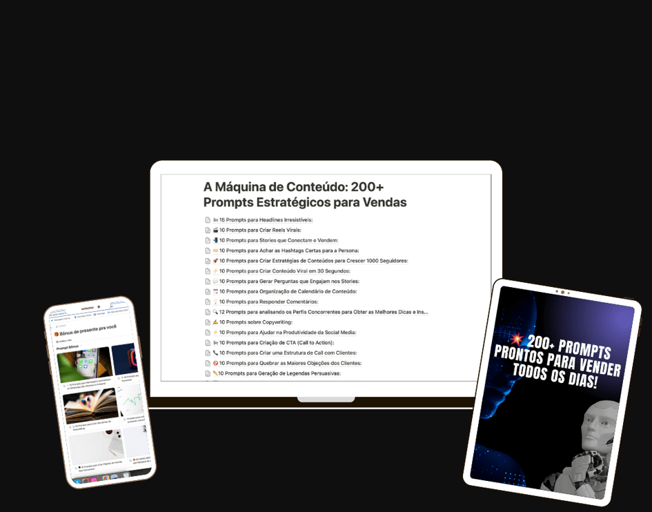 💡 Do conteúdo ao funil de vendas, esses 200 prompts são a ponte entre você e os resultados que sempre quis alcançar.